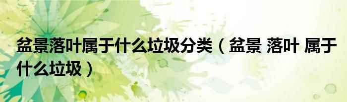 大家好,小育来为大家讲解下。盆景落叶属于什么垃圾分类,盆景 落叶 属于什么垃圾很多人还不知道,现在让我们一起来看看吧!