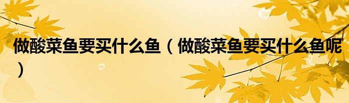 大家好,小育来为大家讲解下。做酸菜鱼要买什么鱼,做酸菜鱼要买什么鱼呢很多人还不知道,现在让我们一起来看看吧!