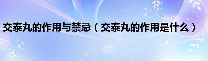 大家好,小育来为大家讲解下。交泰丸的作用与禁忌,交泰丸的作用是什么很多人还不知道,现在让我们一起来看看吧!