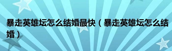 大家好,小育来为大家讲解下。暴走英雄坛怎么结婚最快,暴走英雄坛怎么结婚很多人还不知道,现在让我们一起来看看吧!