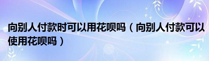 大家好,小育来为大家讲解下。向别人付款时可以用花呗吗,向别人付款可以使用花呗吗很多人还不知道,现在让我们一起来看看吧!