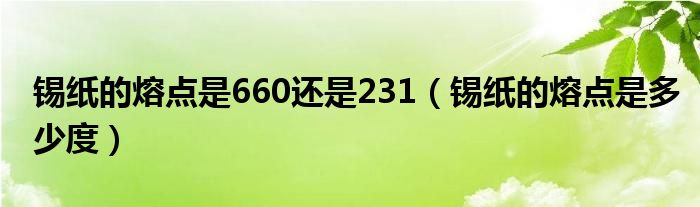 大家好,小育来为大家讲解下。锡纸的熔点是660还是231,锡纸的熔点是多少度很多人还不知道,现在让我们一起来看看吧!