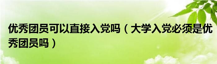 大家好,小育来为大家讲解下。优秀团员可以直接入党吗,大学入党必须是优秀团员吗很多人还不知道,现在让我们一起来看看吧!