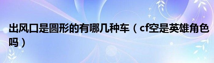 大家好,小育来为大家讲解下。出风口是圆形的有哪几种车,cf空是英雄角色吗很多人还不知道,现在让我们一起来看看吧!