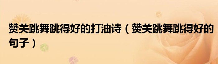 大家好,小育来为大家讲解下。赞美跳舞跳得好的打油诗,赞美跳舞跳得好的句子很多人还不知道,现在让我们一起来看看吧!