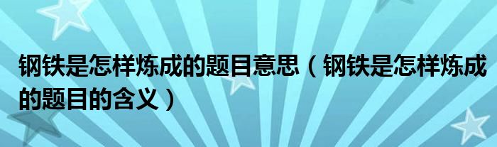 大家好,小育来为大家讲解下。钢铁是怎样炼成的题目意思,钢铁是怎样炼成的题目的含义很多人还不知道,现在让我们一起来看看吧!