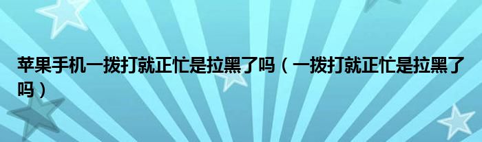 大家好,小育来为大家讲解下。苹果手机一拨打就正忙是拉黑了吗,一拨打就正忙是拉黑了吗很多人还不知道,现在让我们一起来看看吧!