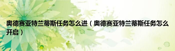 大家好,小育来为大家讲解下。奥德赛亚特兰蒂斯任务怎么进,奥德赛亚特兰蒂斯任务怎么开启很多人还不知道,现在让我们一起来看看吧!