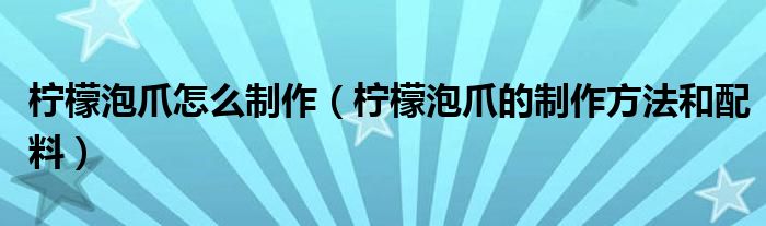 大家好,小育来为大家讲解下。柠檬泡爪怎么制作,柠檬泡爪的制作方法和配料很多人还不知道,现在让我们一起来看看吧!