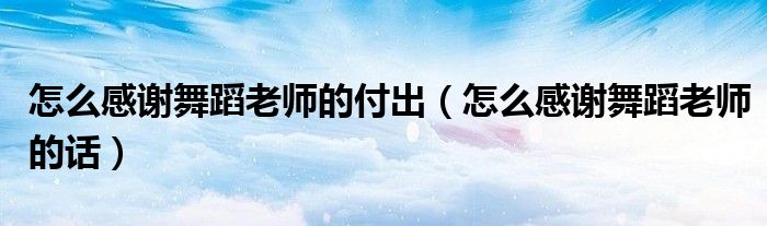 大家好,小育来为大家讲解下。怎么感谢舞蹈老师的付出,怎么感谢舞蹈老师的话很多人还不知道,现在让我们一起来看看吧!