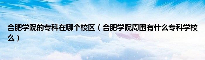 大家好,小育来为大家讲解下。合肥学院的专科在哪个校区,合肥学院周围有什么专科学校么很多人还不知道,现在让我们一起来看看吧!