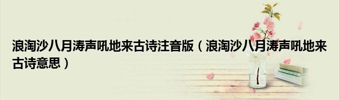 大家好,小育来为大家讲解下。浪淘沙八月涛声吼地来古诗注音版,浪淘沙八月涛声吼地来古诗意思很多人还不知道,现在让我们一起来看看吧!
