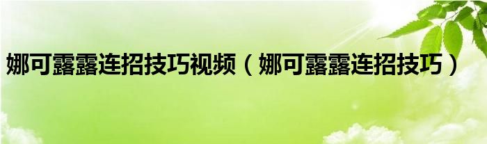 大家好,小育来为大家讲解下。娜可露露连招技巧视频,娜可露露连招技巧很多人还不知道,现在让我们一起来看看吧!