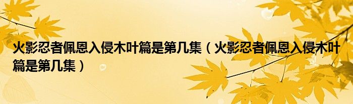 大家好,小育来为大家讲解下。火影忍者佩恩入侵木叶篇是第几集,火影忍者佩恩入侵木叶篇是第几集很多人还不知道,现在让我们一起来看看吧!