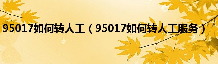 大家好,小育来为大家讲解下。95017如何转人工,95017如何转人工服务很多人还不知道,现在让我们一起来看看吧!