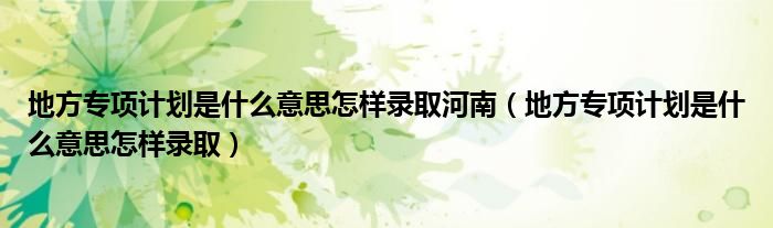 大家好,小育来为大家讲解下。地方专项计划是什么意思怎样录取河南,地方专项计划是什么意思怎样录取很多人还不知道,现在让我们一起来看看吧!