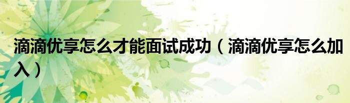 大家好,小育来为大家讲解下。滴滴优享怎么才能面试成功,滴滴优享怎么加入很多人还不知道,现在让我们一起来看看吧!