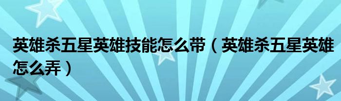 大家好,小育来为大家讲解下。英雄杀五星英雄技能怎么带,英雄杀五星英雄怎么弄很多人还不知道,现在让我们一起来看看吧!