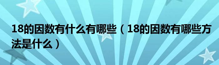 大家好,小育来为大家讲解下。18的因数有什么有哪些,18的因数有哪些方法是什么很多人还不知道,现在让我们一起来看看吧!