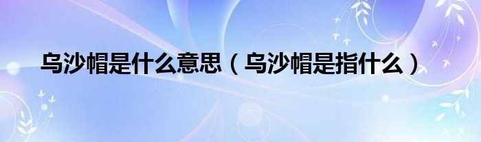 大家好,小育来为大家讲解下。乌沙帽是什么意思,乌沙帽是指什么很多人还不知道,现在让我们一起来看看吧!