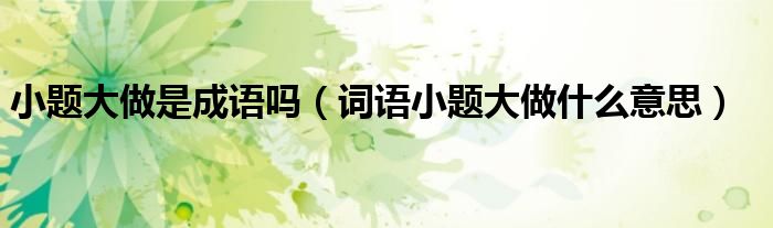 1、小题大做,汉语成语,拼音是Xi m: o t d zu,意思是把一个小题目做成一篇大文章,比喻把一件小事不当回事,有故意夸大的意思。