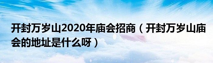 大家好,小育来为大家讲解下。开封万岁山2020年庙会招商,开封万岁山庙会的地址是什么呀很多人还不知道,现在让我们一起来看看吧!
