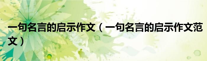 大家好,伊人来为大家解答以上问题。一句名言的启示作文,一句名言的启示作文范文很多人还不知道,现在让我们一起来看看吧!