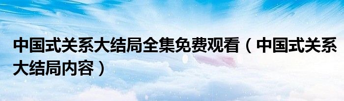 大家好,小育来为大家讲解下。中国式关系大结局全集免费观看,中国式关系大结局内容很多人还不知道,现在让我们一起来看看吧!