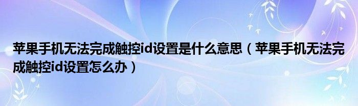 大家好,小育来为大家讲解下。苹果手机无法完成触控id设置是什么意思,苹果手机无法完成触控id设置怎么办很多人还不知道,现在让我们一起来看看吧!