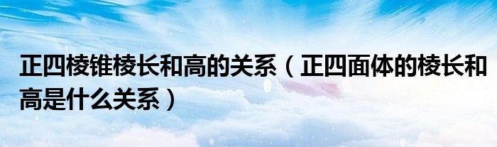 大家好,小育来为大家讲解下。正四棱锥棱长和高的关系,正四面体的棱长和高是什么关系很多人还不知道,现在让我们一起来看看吧!