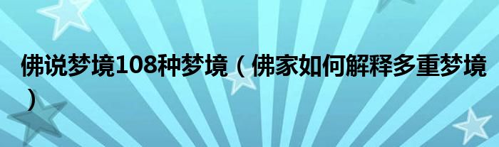 大家好,小育来为大家讲解下。佛说梦境108种梦境,佛家如何解释多重梦境很多人还不知道,现在让我们一起来看看吧!