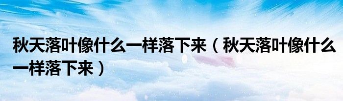 大家好,小育来为大家讲解下。秋天落叶像什么一样落下来,秋天落叶像什么一样落下来很多人还不知道,现在让我们一起来看看吧!