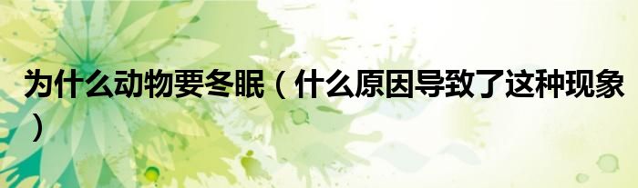 大家好,伊人来为大家解答以上问题。为什么动物要冬眠,什么原因导致了这种现象很多人还不知道,现在让我们一起来看看吧!