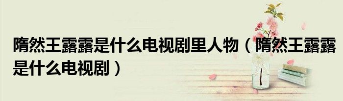 大家好,小育来为大家讲解下。隋然王露露是什么电视剧里人物,隋然王露露是什么电视剧很多人还不知道,现在让我们一起来看看吧!