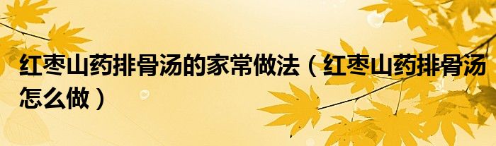 大家好,伊人来为大家解答以上问题。红枣山药排骨汤的家常做法,红枣山药排骨汤怎么做很多人还不知道,现在让我们一起来看看吧!