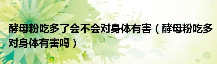 大家好,小育来为大家讲解下。酵母粉吃多了会不会对身体有害,酵母粉吃多对身体有害吗很多人还不知道,现在让我们一起来看看吧!