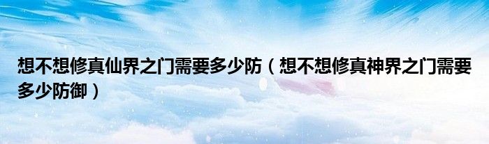 大家好,小育来为大家讲解下。想不想修真仙界之门需要多少防,想不想修真神界之门需要多少防御很多人还不知道,现在让我们一起来看看吧!