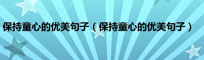 大家好,小育来为大家讲解下。保持童心的优美句子,保持童心的优美句子很多人还不知道,现在让我们一起来看看吧!