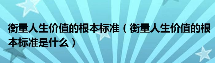 大家好,小育来为大家讲解下。衡量人生价值的根本标准,衡量人生价值的根本标准是什么很多人还不知道,现在让我们一起来看看吧!