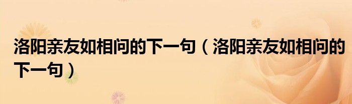大家好,小育来为大家讲解下。洛阳亲友如相问的下一句,洛阳亲友如相问的下一句很多人还不知道,现在让我们一起来看看吧!
