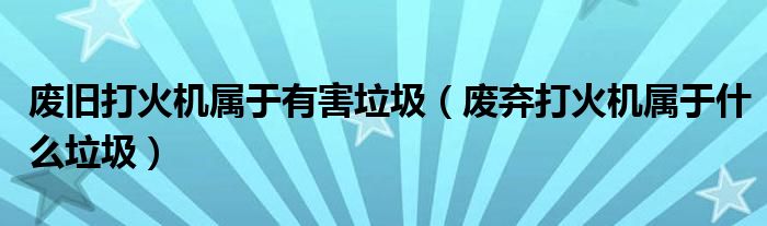 大家好,小育来为大家讲解下。废旧打火机属于有害垃圾,废弃打火机属于什么垃圾很多人还不知道,现在让我们一起来看看吧!