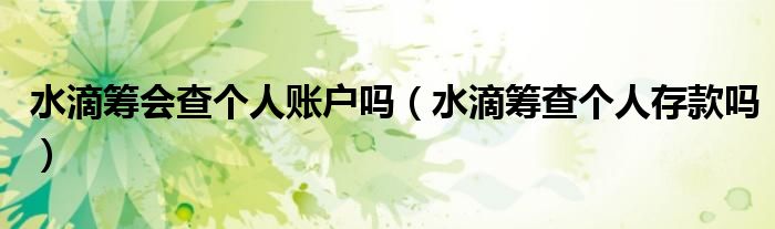 大家好,小育来为大家讲解下。水滴筹会查个人账户吗,水滴筹查个人存款吗很多人还不知道,现在让我们一起来看看吧!