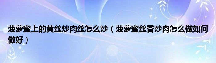 大家好,小育来为大家讲解下。菠萝蜜上的黄丝炒肉丝怎么炒,菠萝蜜丝香炒肉怎么做如何做好很多人还不知道,现在让我们一起来看看吧!