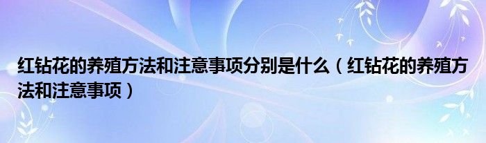 大家好,小育来为大家讲解下。红钻花的养殖方法和注意事项分别是什么,红钻花的养殖方法和注意事项很多人还不知道,现在让我们一起来看看吧!
