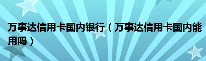 大家好,小育来为大家讲解下。万事达信用卡国内银行,万事达信用卡国内能用吗很多人还不知道,现在让我们一起来看看吧!