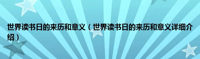 大家好,伊人来为大家解答以上问题。世界读书日的来历和意义,世界读书日的来历和意义详细介绍很多人还不知道,现在让我们一起来看看吧!