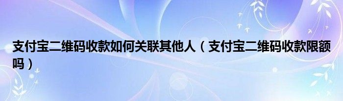大家好,小育来为大家讲解下。支付宝二维码收款如何关联其他人,支付宝二维码收款限额吗很多人还不知道,现在让我们一起来看看吧!
