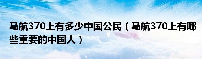 大家好,小育来为大家讲解下。马航370上有多少中国公民,马航370上有哪些重要的中国人很多人还不知道,现在让我们一起来看看吧!