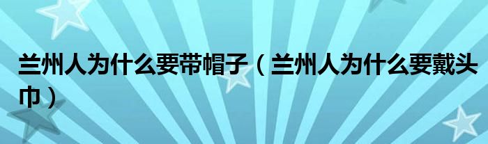 大家好,小育来为大家讲解下。兰州人为什么要带帽子,兰州人为什么要戴头巾很多人还不知道,现在让我们一起来看看吧!