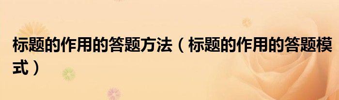大家好,小育来为大家讲解下。标题的作用的答题方法,标题的作用的答题模式很多人还不知道,现在让我们一起来看看吧!